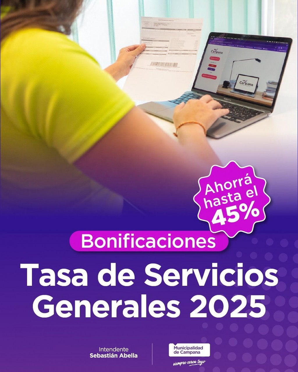 El municipio realizará un descuento del 45% de la tasa de servicios generales para los contribuyentes que efectúen el pago anual antes del 20 de febrero. Quienes opten por el pago semestral recibirán un descuento del 12%. A estas bonificaciones se puede sumar un 10% de descuento a quienes hayan pagado en tiempo y forma la tasa durante 2024 y un 10% de descuento por estar adherido a la Boleta Electrónica. AUDIO: ROMINA VULICH - sec de ingresos públicos