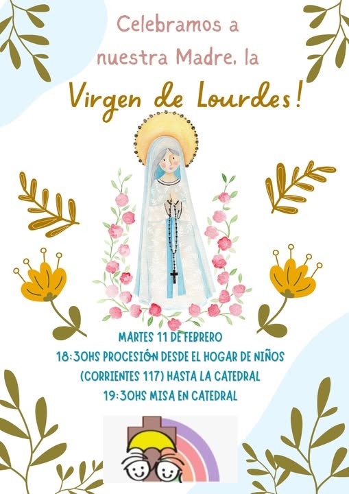 El próximo martes, 11 de febrero, celebramos a Nuestra Señora de Lourdes, patrona del Hogar del Niño de nuestra ciudad. La comunidad de la institución realizará una procesión con la imagen de la Virgen. Partirá a las 18:30 desde la sede del Hogar hacia la Catedral y a las 19:30 se rezará la Santa Misa. AUDIO: PADRES FERNANDO CREVATÍN - párroco.