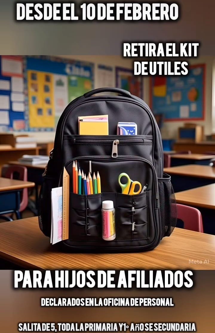 El Sindicato de Trabajadores Municipales entregará útiles escolares para los hijos de los afiliados que asistan a Sala de 5 en el jardín de infantes, de 1ero a 6to grado de primaria y 1er año de secundaria. Se entregarán del 10 al 28 de febrero. AUDIO: WALTER OTAMENDI - sec. de prensa STMC