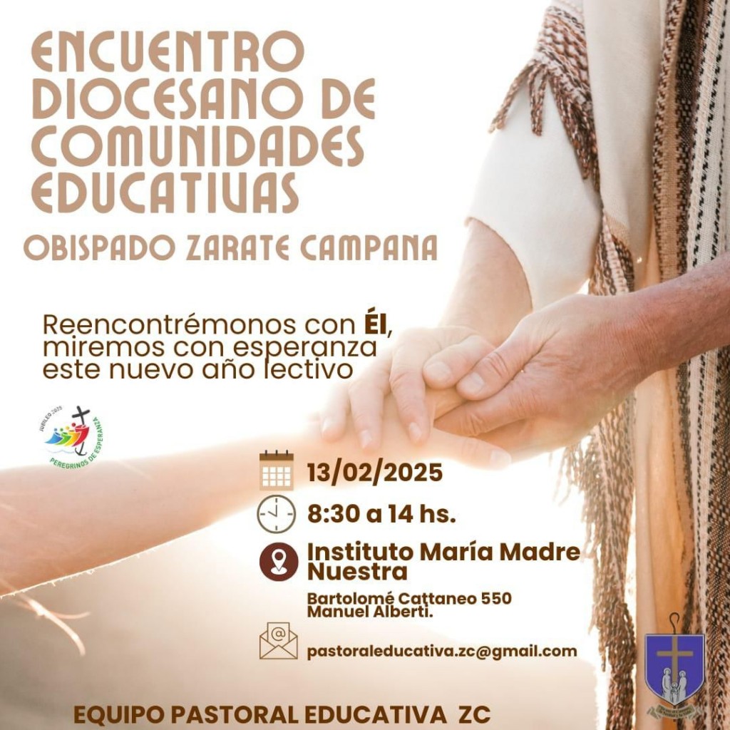 Se desarrollará mañana de 8:30 a 14 en el Instituto María Madre Nuestra de la localidad de Manuel Alberti. Será un encuentro diocesano de comunidades educativas que llevará adelante el equipo de la Pastoral Educativa de la diócesis. AUDIO: Padre JORGE RITACCO - delegado episcopal para la Pastoral Educativa