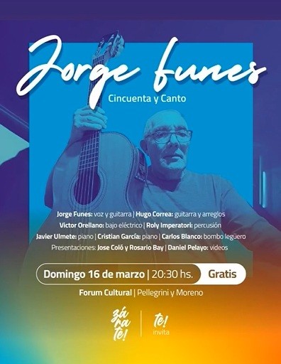 Este domingo a las 20:30 se presentará en el Fórum Cultural de Zárate, Jorge Funes con su espectáculo “Cincuenta y Canto”. La entrada es gratuita. AUDIO: JORGE FUNES - músico