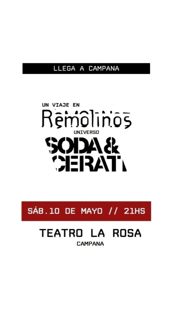 Llega a nuestra ciudad el espectáculo “Un viaje en remolinos universo Soda & Cerati”. Se presentará este sábado desde las 21 en el Teatro La Rosa. Las entradas están a la venta. AUDIO: TOM FERNÁNDEZ - cantante