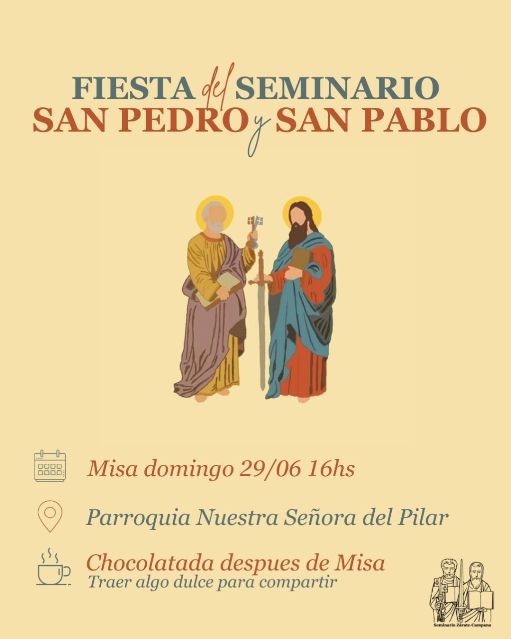 En honor a sus santos Patronos San Pedro y San Pablo, el Seminario Diocesano celebrará la santa misa el domingo 29 de junio a las 16 en la Parroquia Nuestra Señora del Pilar. Posteriormente habrá una chocolatada en comunidad. AUDIO: PADRE FERNANDO FUSARI - rector del seminario