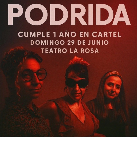 Se presentará este domingo a las 20 en el Teatro La Rosa, la obra "Podrida", dirigida por Javier Marizaldi, que está celebrando estar en cartel hace ya un año. Las entradas están en venta a través de las redes del teatro. AUDIO: JAVIER MARIZALDI - director // GRACIELA CARFAGNO - actriz // ANDREA GIANA - actriz