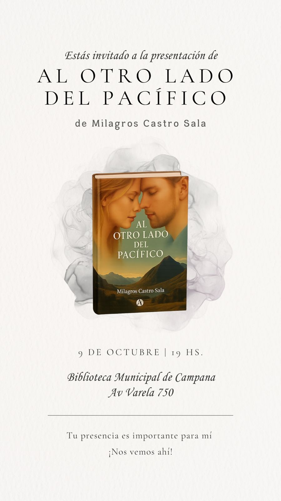 La escritora campanense Milagros Castro Sala presentará su primera novela, “Al otro lado del pacífico”. Se trata de una historia basada en hechos reales. Será en la Biblioteca Municipal este jueves a las 19. AUDIO: MILAGROS CASTRO SALA - escritora