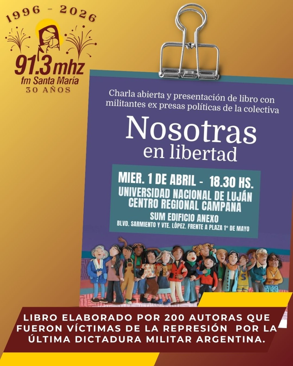 Presentan en Campana el libro “Nosotras en Libertad. Será mañana a las 18:30 en el SUM del edificio anexo de la Universidad Nacional de Luján. El texto fue elaborado por 200 autoras que fueron víctimas de la represión, tortura y encarcelamiento ilegal perpetrado por la última dictadura militar argentina. AUDIO: GERMÁN JENDRULEK - Instituto Jauretche