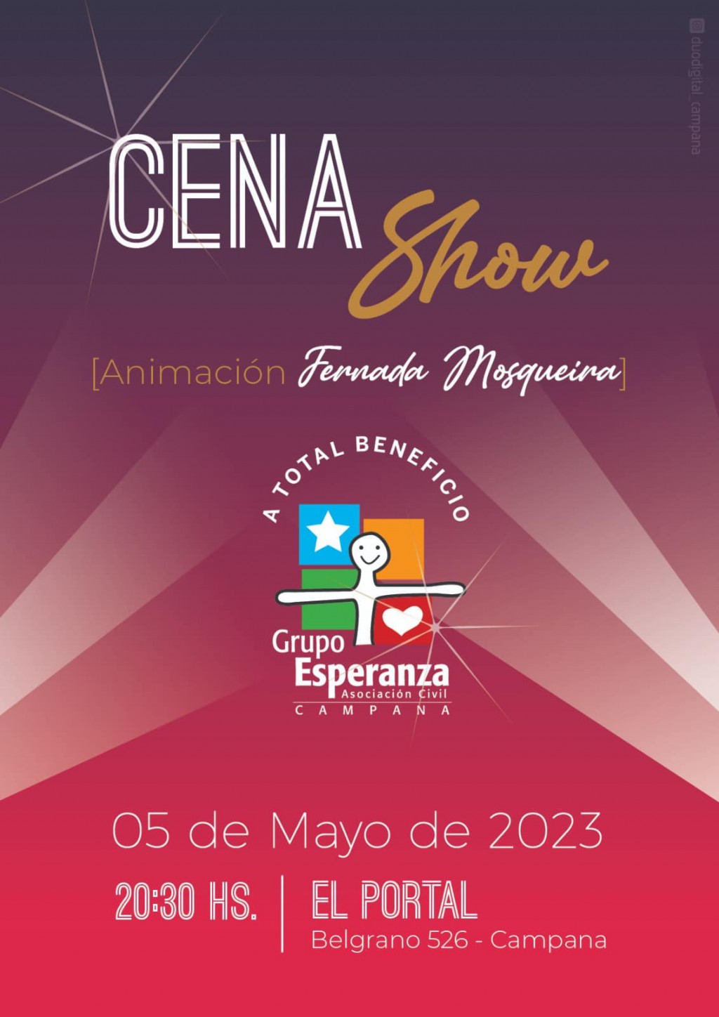 Se viene una nueva edición de la Cena Show organizada por el Grupo Esperanza. La cita es este viernes desde las 20:30 en el salón El Portal. Las tarjetas continúan a la venta. AUDIO: ELDA BOCCA - Grupo Esperanza