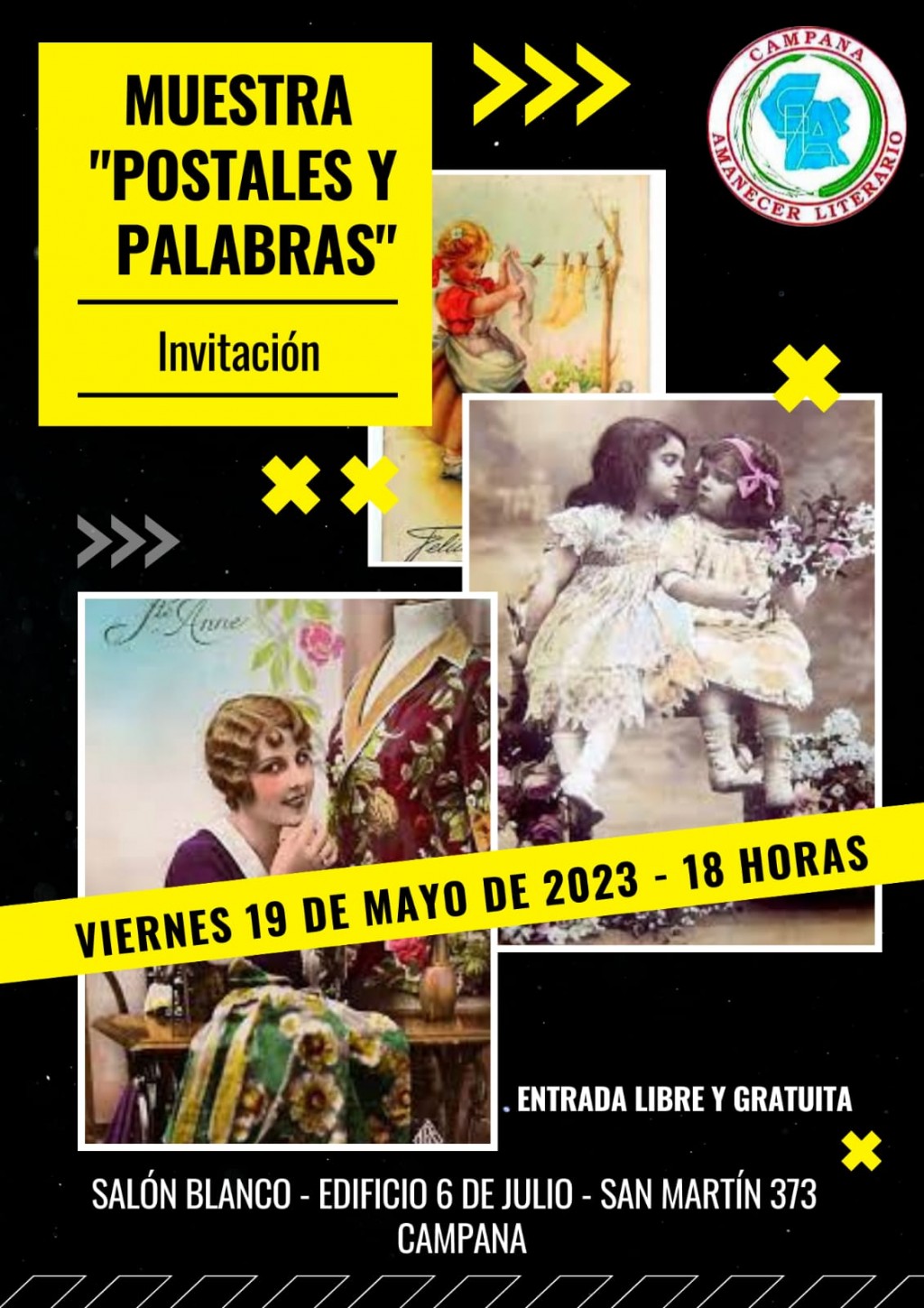En el marco de la celebración por sus 28 años, Campana Amanecer Literario, presentará la muestra “Postales y Palabras” que abrirá sus puertas este viernes a las 18 en el Edificio 6 de julio. Con entrada libre y gratuita la exposición está inspirada en postales del 1900, gentileza de Pedro Gatti. AUDIO: STELLA MARIS GONZÁLEZ CHUQUEL - Presidenta de CAL