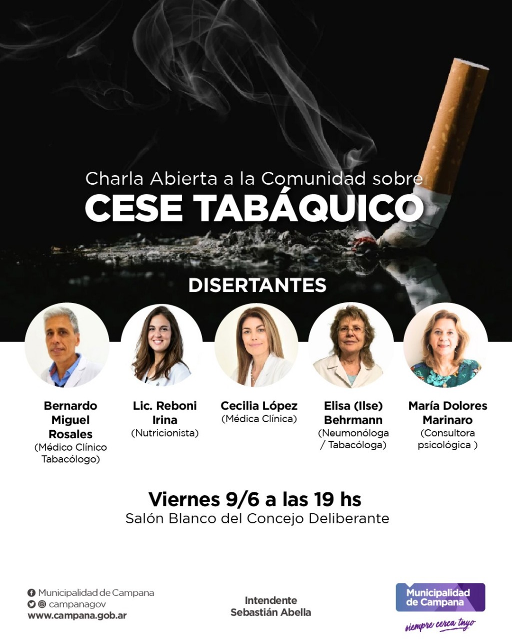 Este viernes a las 19 se realizará en el Salón Blanco del Honorable Concejo Deliberante una charla abierta a la comunidad sobre cese tabáquico. Distintos profesionales de diferentes especialidades de la salud abordarán el tema de manera conjunta. AUDIO: BERNARDO ROSALES - Medico