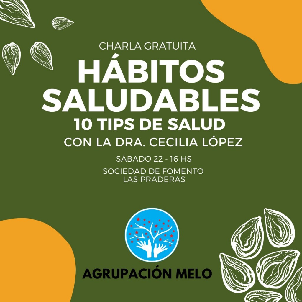La Agrupación Melo organiza una nueva charla sobre salud. Será este sábado en la sociedad de fomento del barrio Las Praderas. La dra. Cecilia López hablará sobre hábitos saludables en la alimentación. La participación en libre y gratuita. AUDIO: MARÍA JOSÉ Y MARCELO - Agrupación Melo