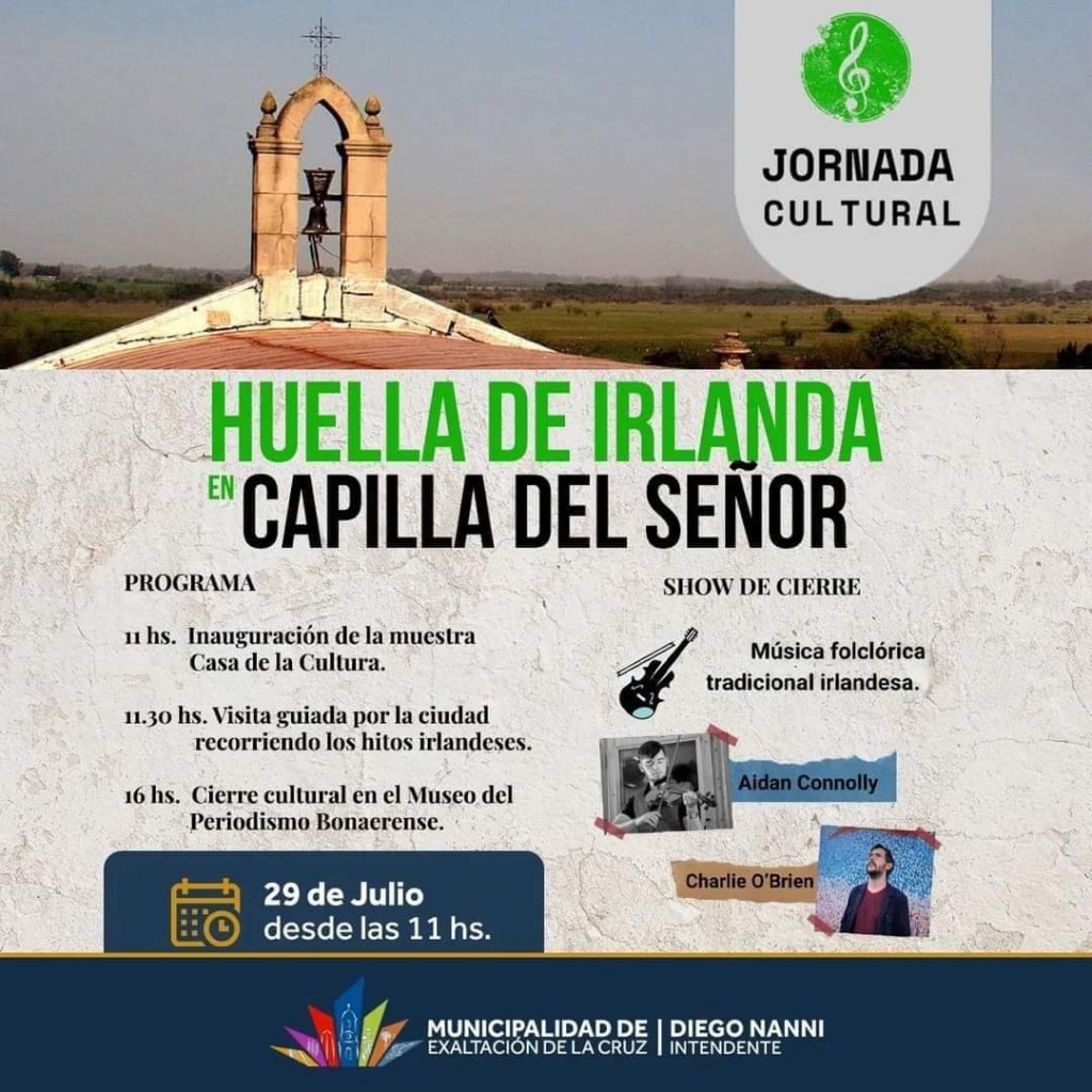 Este sábado desde las 11, se realizará una jornada cultural en Capilla del Señor . En el programa detallan entre las actividades una muestra en la Casa de la Cultura, visita guiada por la ciudad y un show musical de cierre con folclore tradicional irlandés. AUDIO: BENJAMÍN VITTORI