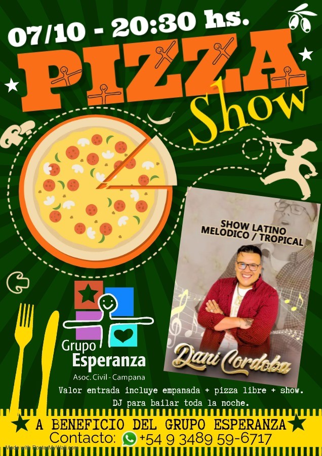 Este sábado en Casa Esperanza se realizará una Pizza Show a beneficio del Grupo. Habrá pizza libre y un show de música en vivo con todos los ritmos. Comenzará a las 20:30 y las entradas ya están a la venta. AUDIO: NORMA CASELLA - Pte. Grupo Esperanza